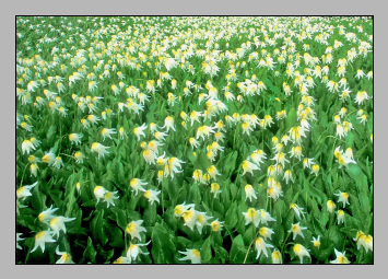 ШАГ 2: теперь нам понадобится фотография с пейзажем и цветами на переднем плане. Ее мы тоже сначала превращаем в обычный слой, который можно назвать ЦВЕТЫ. На этой фотографии нам нужны только цветы, поэтому обрежем и ее примерно так: